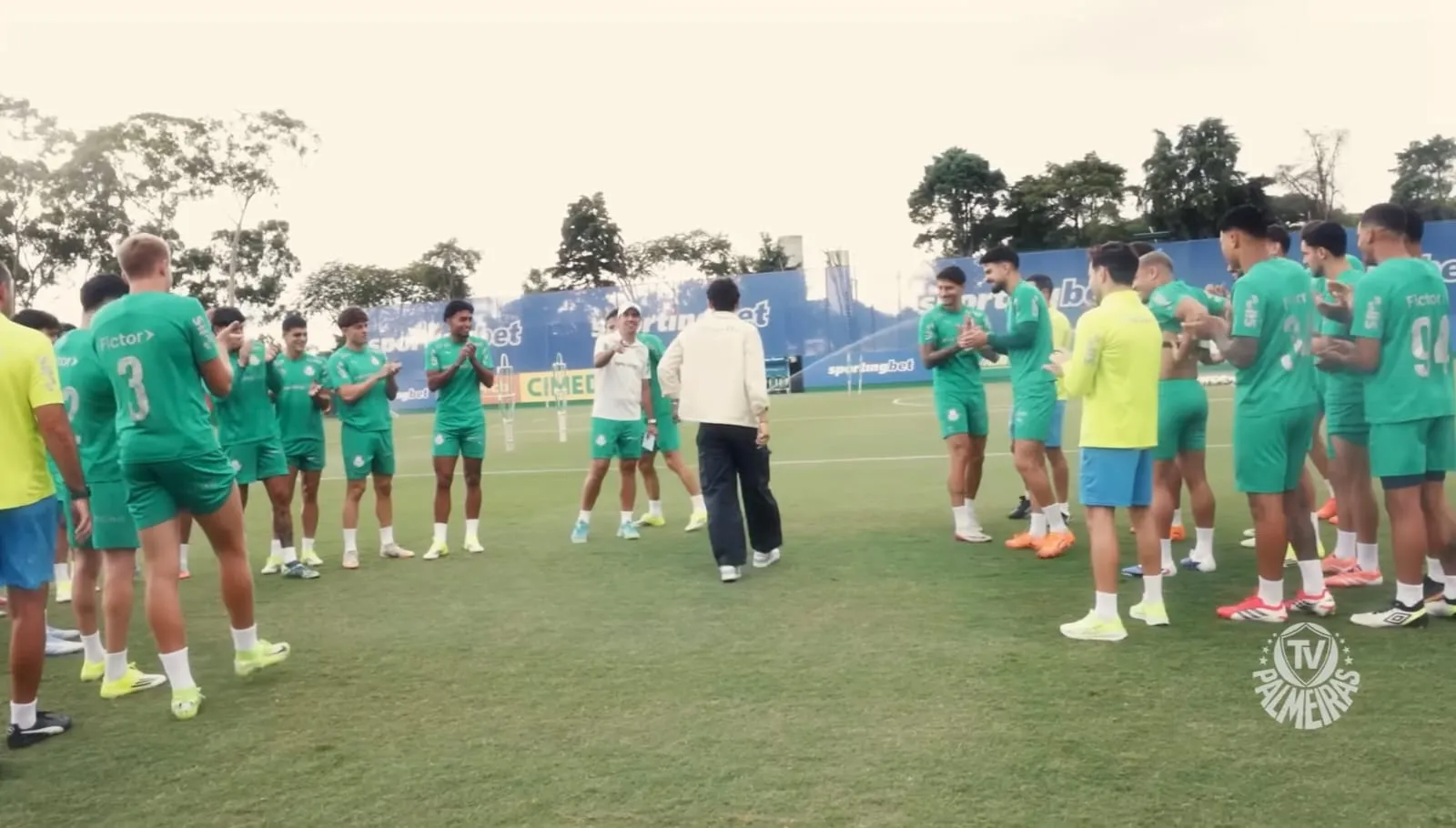 Na sequência, a presidente do clube, Leila Pereira, destacou “isso é um até breve. Não tenho dúvida nenhuma que aqui é a sua casa e que um dia você vai voltar pra cá”.