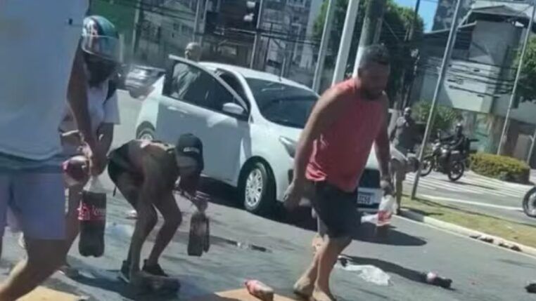 A mobilização de motoristas e pedestres para devolver garrafas de refrigerante que caíram de uma caminhonete chamou a atenção em uma das principais avenidas de Vitória. O acidente aconteceu na tarde do último sábado (21/02), no Espírito Santo, e parou a Avenida Nossa Senhora dos Navegantes.