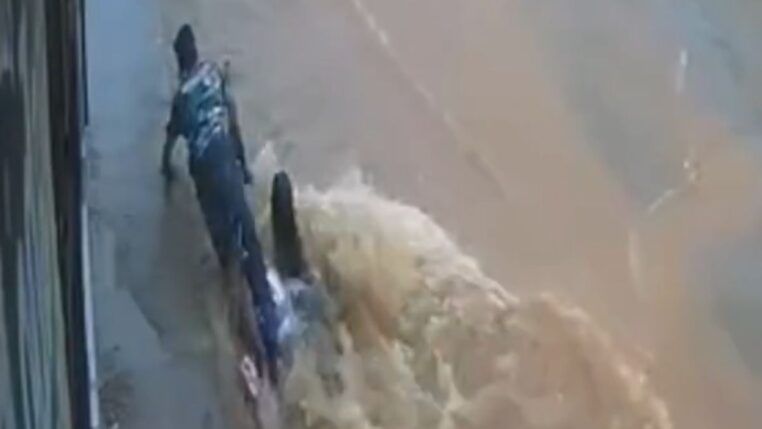 O homem se jogou na água para salvar uma mulher e uma criança que foram arrastadas pela enxurrada durante a chuva que atingiu o município.