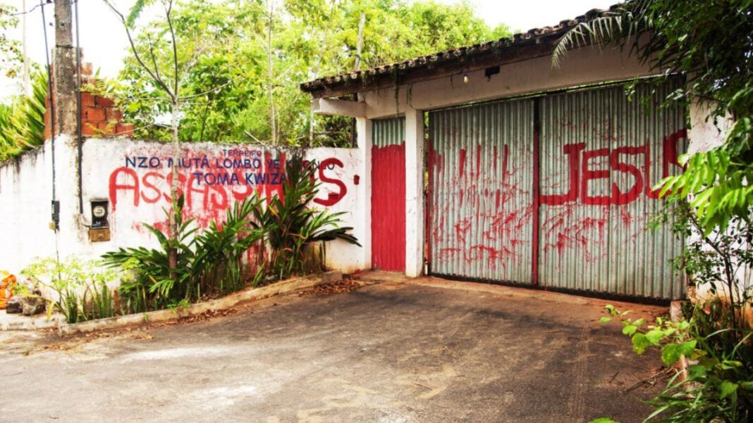 O terreiro Nzo Mutá Lombô Ye Kayongo Toma Kwiza, localizado no bairro de Cajazeiras XI em Salvador, foi alvo de pichações com mensagens de intolerância religiosa. O ataque aconteceu na madrugada do último sábado (17/01) e incluiu palavras como “assassinos” e “Jesus” escritas em tinta vermelha na entrada do espaço religioso. O caso foi registrado na Delegacia Especializada de Combate ao Racismo e à Intolerância Religiosa (Decrin).