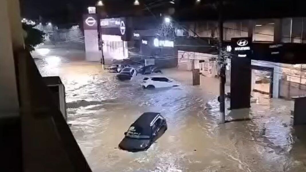A chuva na Zona da Mata mineira causou uma série de transtornos. Entre eles, alagamentos que viraram enxurradas. Em vídeos que viralizaram nas redes sociais, é possível ver carros levados pela força da água, em frente a duas concessionárias.