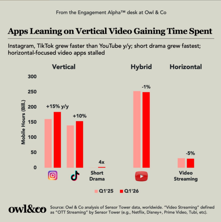 Como mostrei no início deste ano, se tudo é TV, o dinheiro segue o mesmo caminho. Em meio à escalada do vídeo vertical, plataformas, independentemente do ponto de partida, evoluem para algo funcionalmente indistinguível da televisão, conforme colocou Derek Thompson.