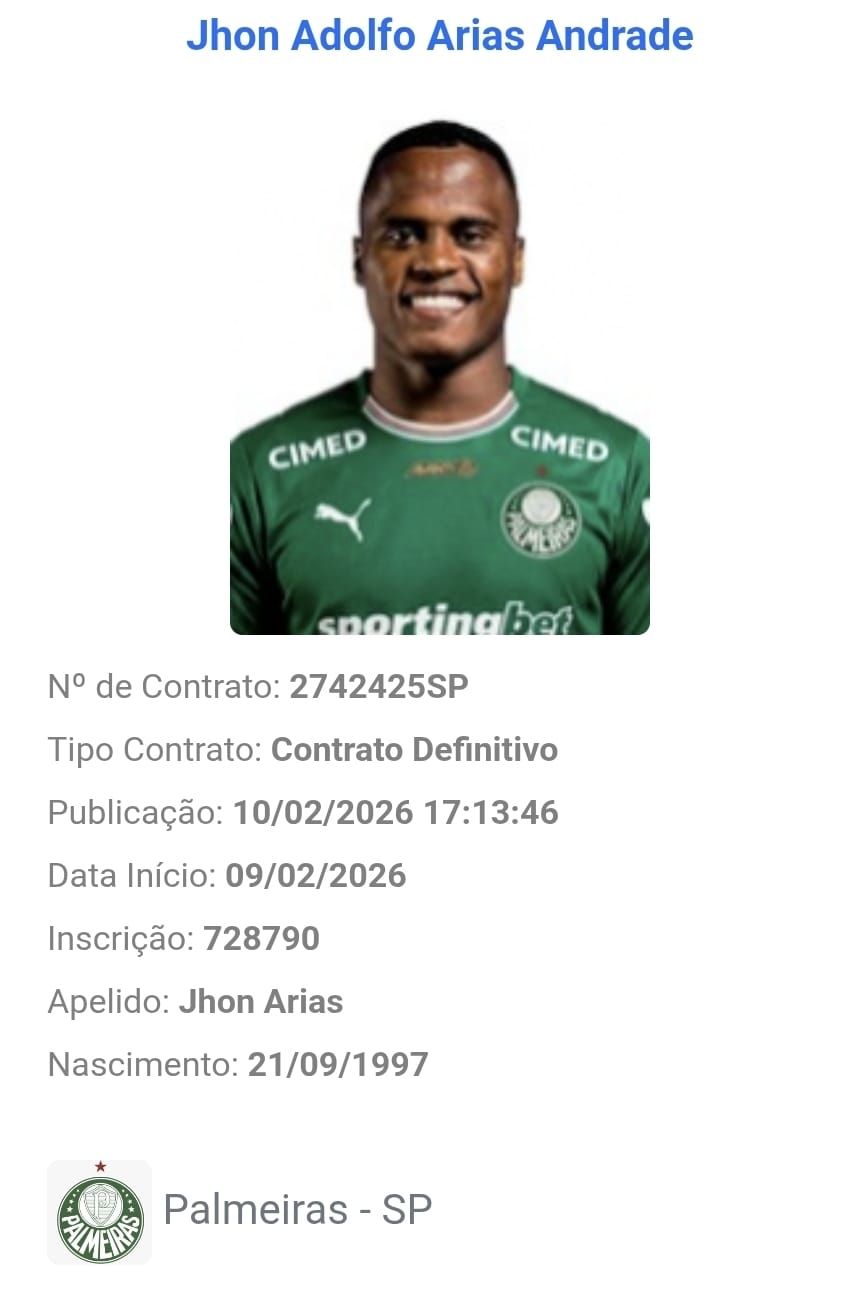 Com isso, Jhon Arias vive a expectativa de estrear pelo Palmeiras na fase quartas de final do Campeonato Paulista, que esta prevista para acontecer entre os dias 21 e 22 de fevereiro, mas ainda sem adversário definido.