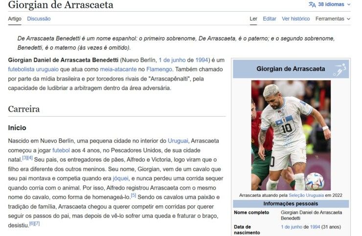 A partir daí, o termo se espalhou rapidamente, sendo replicado em comentários, memes e discussões online. Até na página de Arrascaeta na Wikipédia o apelido foi parar. Porém, vale destacar que qualquer pessoa pode editar a enciclopédia online.