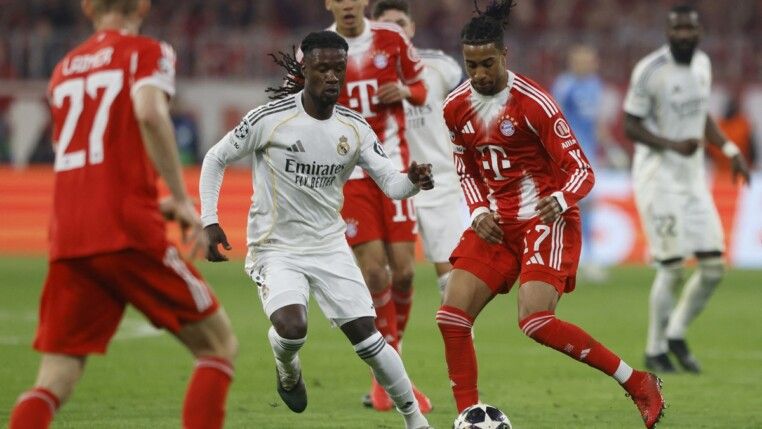 O Bayern empatou aos 5 minutos. Kimmich cobrou escanteio e Lunin caiu para dentro do próprio gol. Pavlovic desviou para as redes enquanto era marcado por Alexander-Arnold.