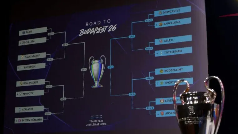 Newcastle disputará com o Barcelona. Atlético de Madrid enfrentará o Tottenham. Bodo/Glimt jogará contra o Sporting. Bayer Leverkusen terá o Arsenal como adversário.