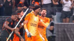 Samuel Lino abriu o placar ao aproveitar erro de Barrera, que marcava o lateral Varela. A bola rebateu para o meio da área. O atacante chutou cruzado. O desvio na perna de Bastos enganou o goleiro Raul.