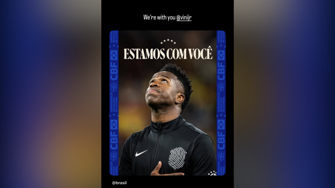 O piloto britânico utilizou suas redes sociais para expressar apoio ao brasileiro com uma mensagem direta. “Estamos com você, Vini Jr.”, escreveu Hamilton em sua publicação.