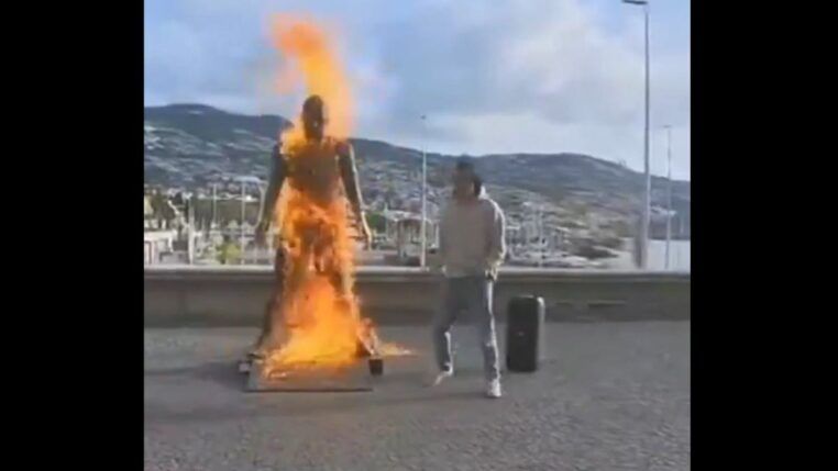 Um homem incendiou a estátua de Cristiano Ronaldo instalada em frente ao museu do jogador em Funchal, na Ilha da Madeira, na terça-feira (20/01).