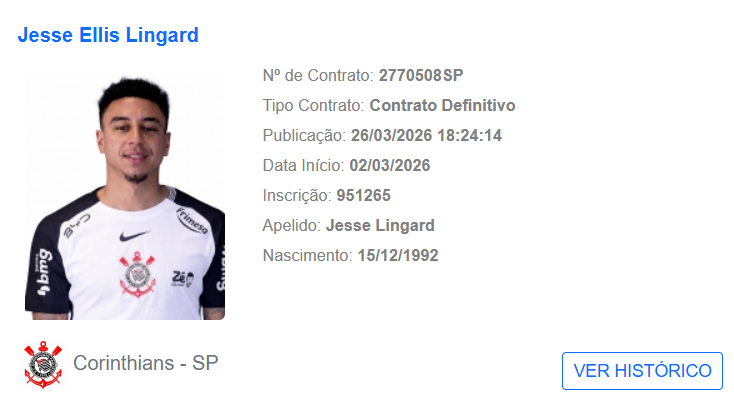 O Corinthians registrou o contrato do meia inglês Jesse Lingard no Boletim Informativo Diário (BID) da CBF nesta quinta-feira (26/03). Agora, o camisa 77 pode estrear pelo Timão.
