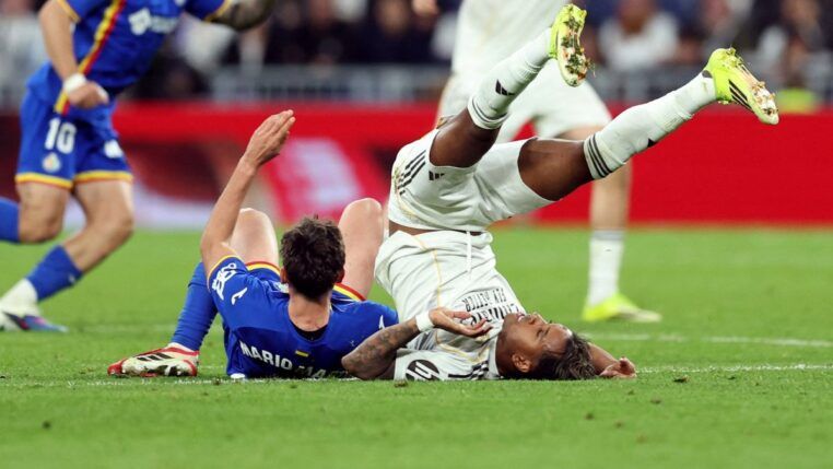 O atacante Rodrygo sofreu um rompimento do ligamento cruzado anterior do joelho direito. A lesão aconteceu na derrota do Real Madrid para o Getafe na última segunda-feira (02/03).