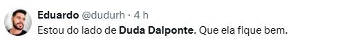 Duda Dalponte utilizou as redes sociais relembrando o que aconteceu e como se sentiu no momento.