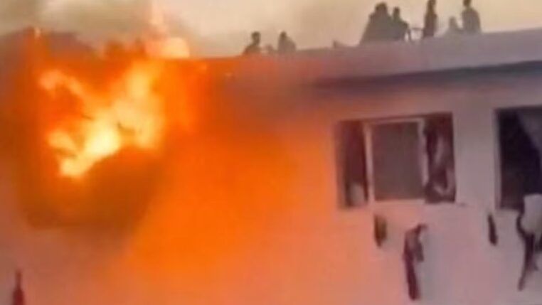 Estudantes se penduraram nas janelas e alguns caíram de um prédio em chamas durante protestos na Universidade Cheikh Anta Diop, em Dakar, capital do Senegal, na última segunda-feira (09/02).