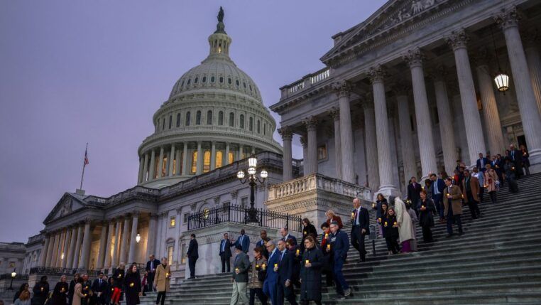 Membros democratas do Congresso se reuniram na escadaria do Capitólio para marcar o 5º aniversário do ataque ao Capitólio. (Foto: Evelyn Hockstein/Reuters)