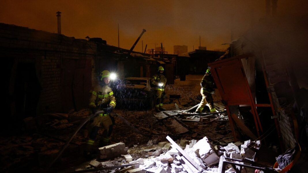 O Ministério da Defesa da Rússia disse que o ataque teve como alvo uma infraestrutura crítica na Ucrânia. Ele disse que a Rússia também usou drones e armas terrestres e marítimas de longo alcance e alta precisão.