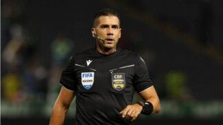 Escudo Fifa no peito e apito trapalhão na boca. Bruno Arleu de Araújo valida gol bizarro no Brasileirão Árbitro de Palmeiras e Grêmio comete sequência de erros no encerramento da 9ª rodada