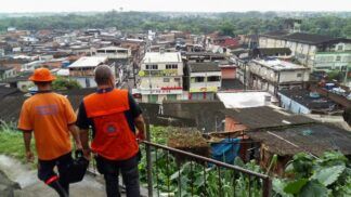 Deslizamento na Viela São Cristóvão, no Guarujá, atingiu três casas que haviam sido desocupadas