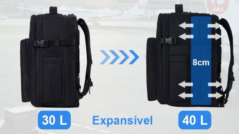 Essa capacidade de se ajustar faz dela um item dois em um: compacta para o uso diário ou para cumprir as restrições de bagagem de mão das companhias aéreas (como as de até 10kg), e ampla o suficiente para colocar roupas para uma viagem quando totalmente expandida. O aumento na capacidade pode variar, passando, em muitos modelos, de 30 litros para até 40 ou 42 litros.