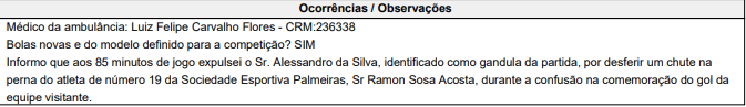 Vale destacar que nenhum dos quatorze membros da arbitragem presentes no clássico relataram os ocorridos citados na súmula da partida.