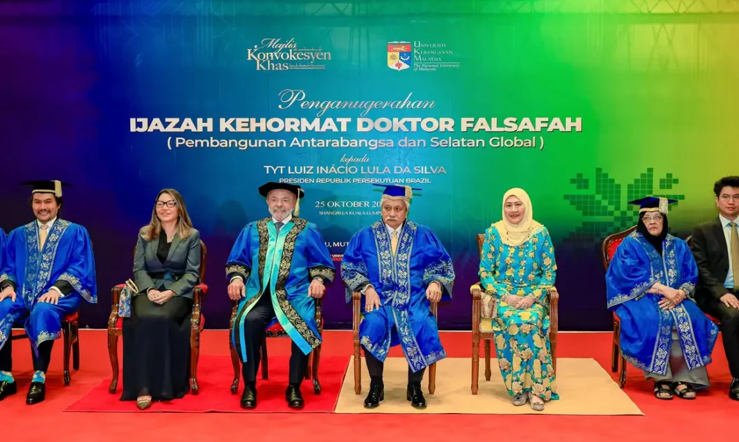 O presidente Luiz Inácio Lula da Silva criticou neste sábado (25/10) a continuidade da guerra em Gaza e a falta de avanços na criação de um Estado palestino. A declaração foi feita durante a cerimônia de entrega do título de doutor “Honoris Causa” em Filosofia e Desenvolvimento Internacional do Sul Global pela Universidade Nacional da Malásia, em Putrajaya.