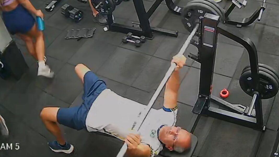 Imagens de câmera de segurança do local registraram o momento em que Ronald José Salvador Montenegro, de 55 anos, faz o exercício chamado supino e o equipamento cai na região do tórax. Após o impacto, ele se levanta, mas cai no chão logo depois.